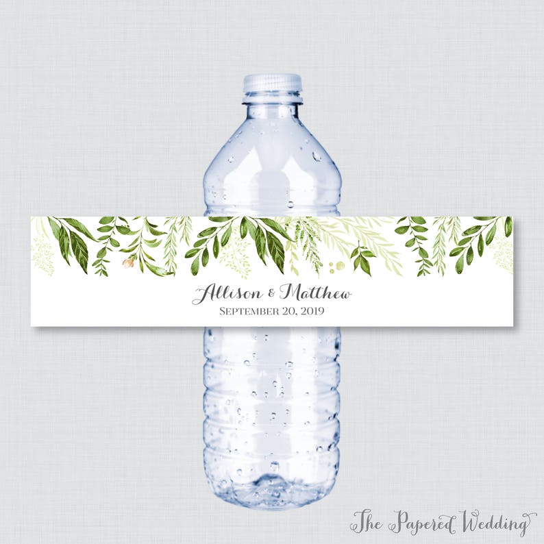 Printable Or Printed Greenery Wedding Water Bottle Labels Etsy