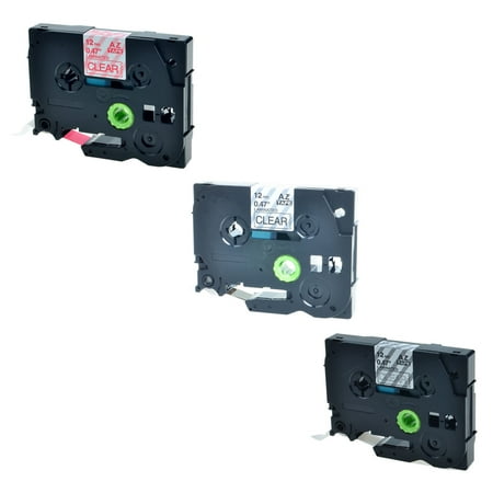 Greencycle 3pk 12mm 8m Black Red White On Clear Laminated Label Tape