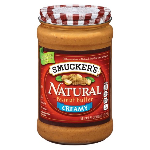 Smuckers creamy natural peanut butter is 100 natural and made with two simple ingredients. Great peanut taste organic ingredients and classic smuckers goodness come together in our creamy organic natural peanut butter. But most commercial peanut butter brands are spiked with hydrogenated oils and unnecessary fillers and have more sugar than they do fiber.