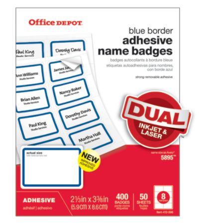 Office Depot Brand Name Badge Labels 2 13 X 3 38 Blue Border Pack Of