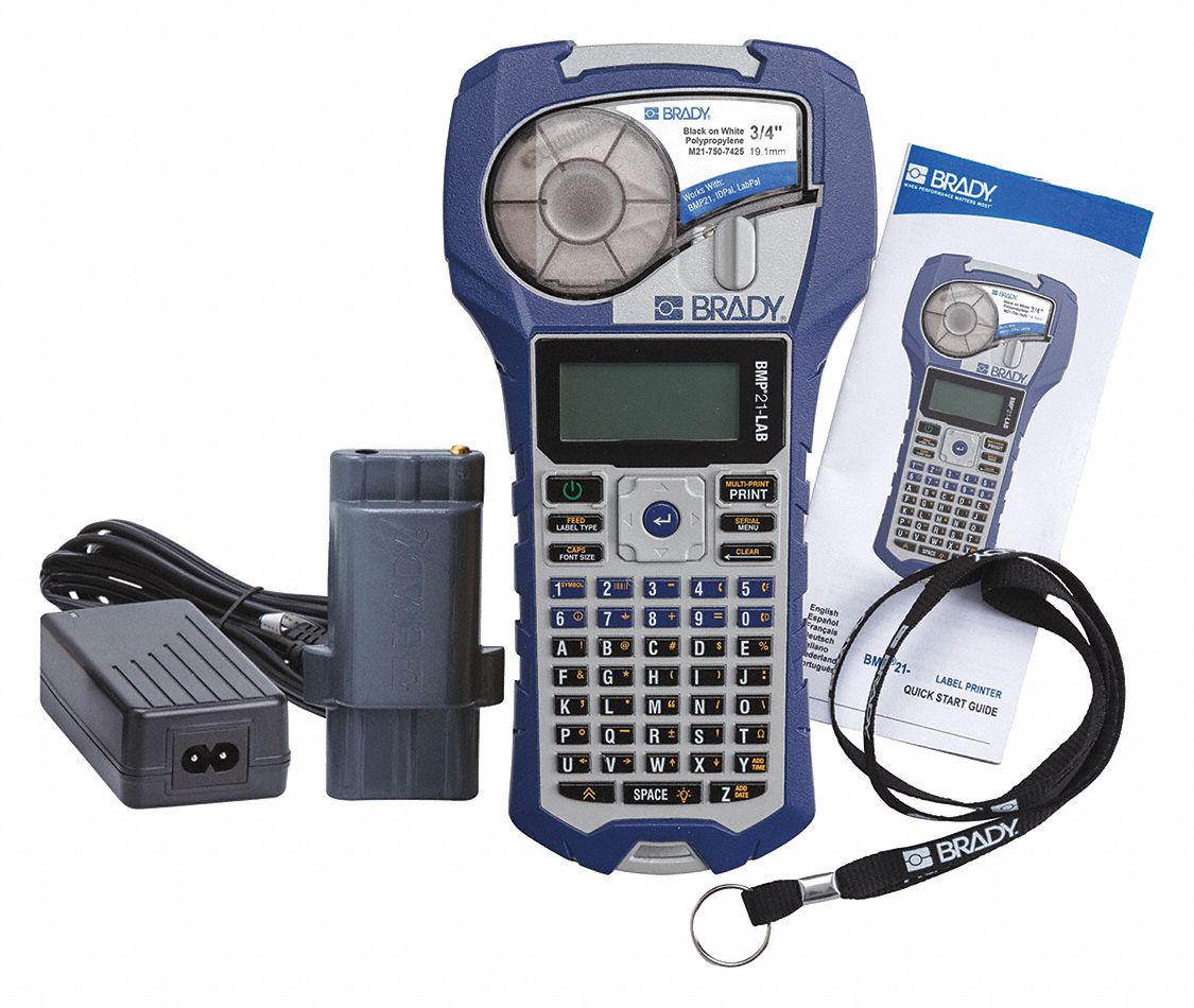 Label printer provides a print resolution of 203 dpi. Nylon cloth rechargeable li ion battery ac adaptercharger and hard carry case. Includes bmp21 lab handheld label printer m21 750 7425 label cartridge and quick start guide handheld label maker capable of creating multi line labels for clear identification of laboratory equipment including slides tubes flasks beakers bottles and more.