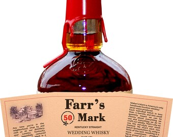 Personalized makers mark style whiskey bottle label 375ml and 750ml sizes for weddings birthdays or any occasion. Your makers mark how and why make your own custom clothing labels to sew in the clothes you make.