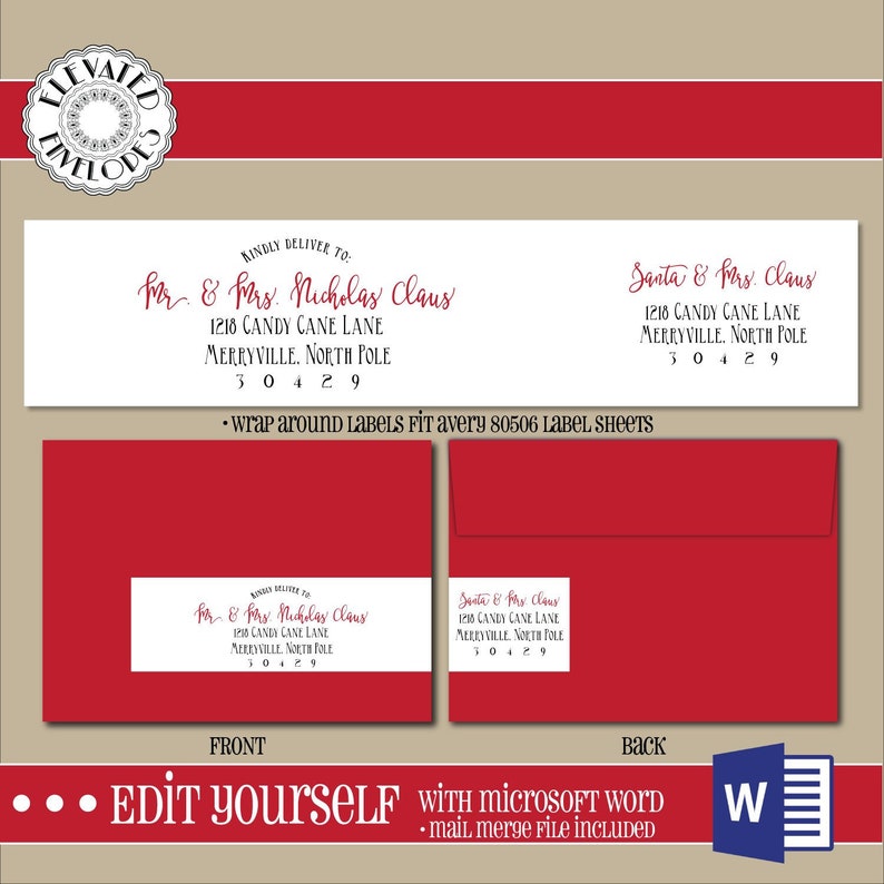 Editable Christmas Address Label Templatewrap Around Label Etsy