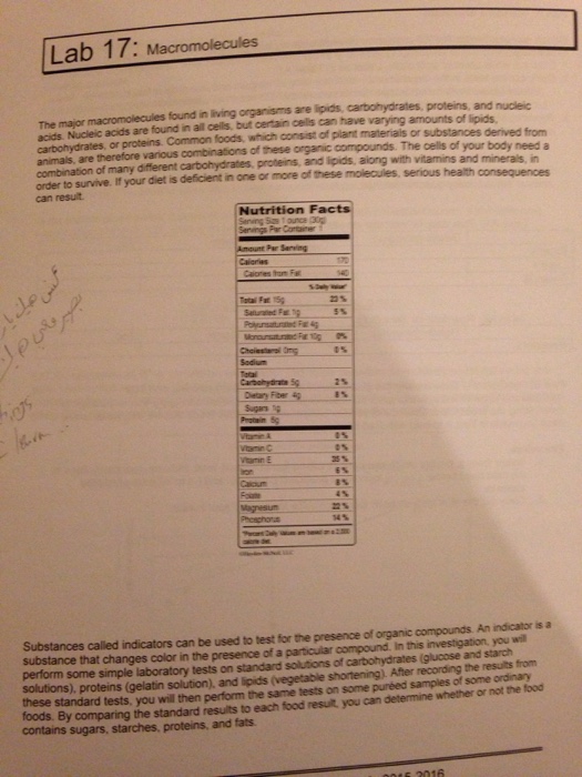 Macromolecules And Nutrition Label Worksheet Answers