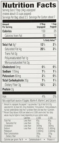 Microwave popcorn nutrition label. Usually a normal size bag of popcorn is 10 12 cups. This serving also contains a whopping 15 grams of fiber which is extremely high. Its proven every time sombody makes popcorn.