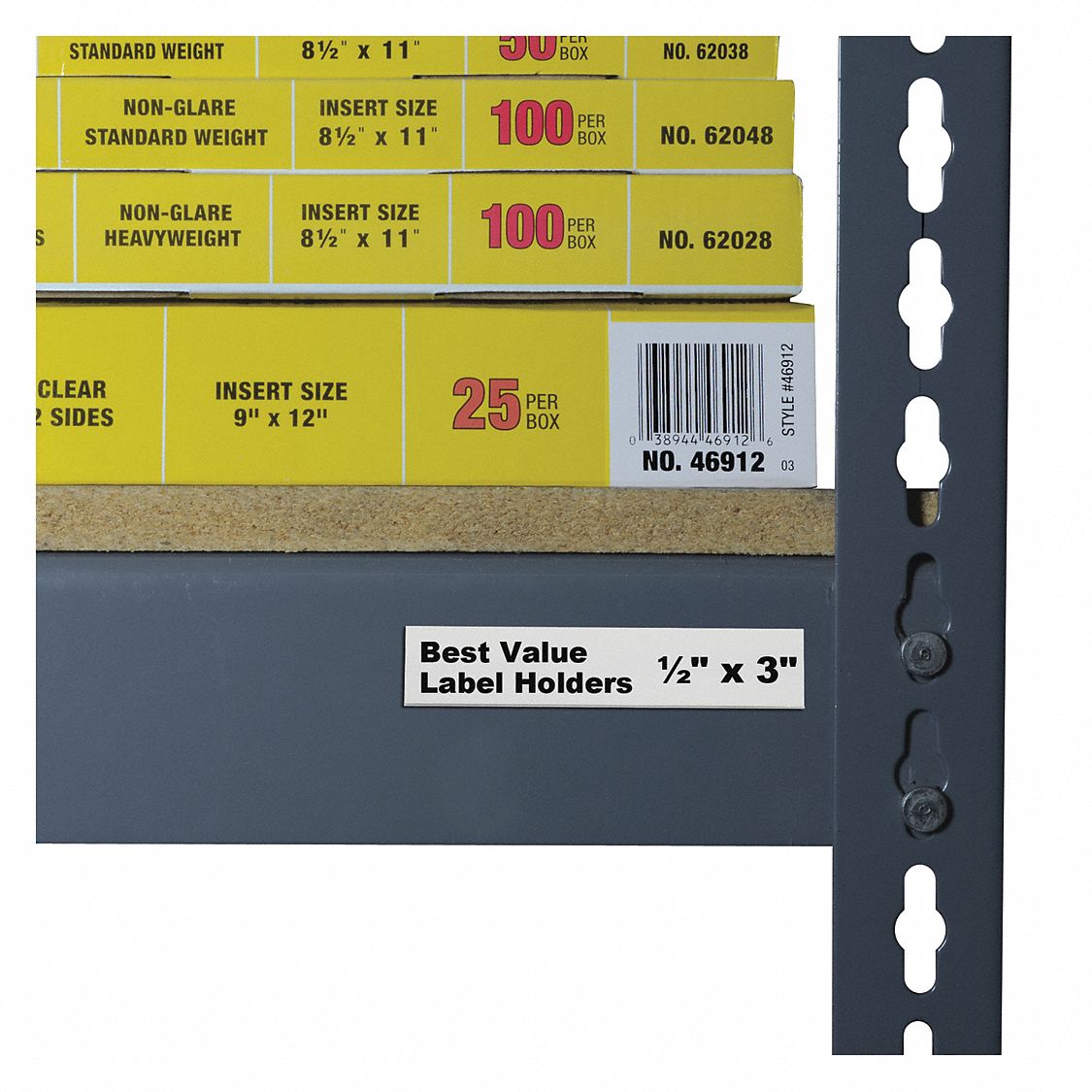 Clear material plastic type label holders details. Made specifically to identify small sections of any length wire shelf this holder easily snaps on to your wire shelf so that all you have to do is. C line top load clear label holders case of 50 brand new.