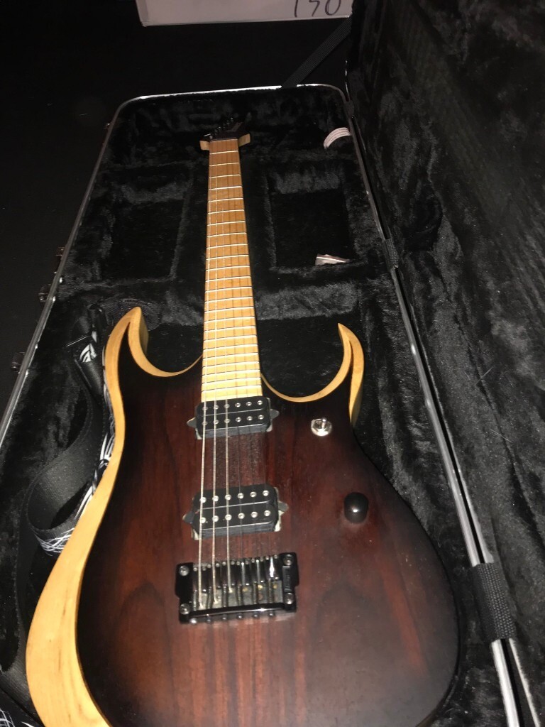 Based on the famous rg ibanez made a few tweaks and mods to gear the rg even more towards metal guitarists. Pitted against a layered ash body these woods combine to create a bright almost otherworldly color scheme. A pair of coil tapped dimarzio fusion edge 7 humbuckers yields an amazing clarity and smooth response that lends well to progressive metal.