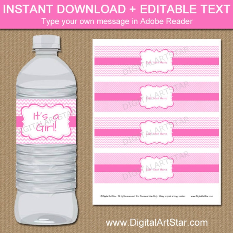 Pink Chevron Water Bottle Labels Its A Girl By Charmingprintables