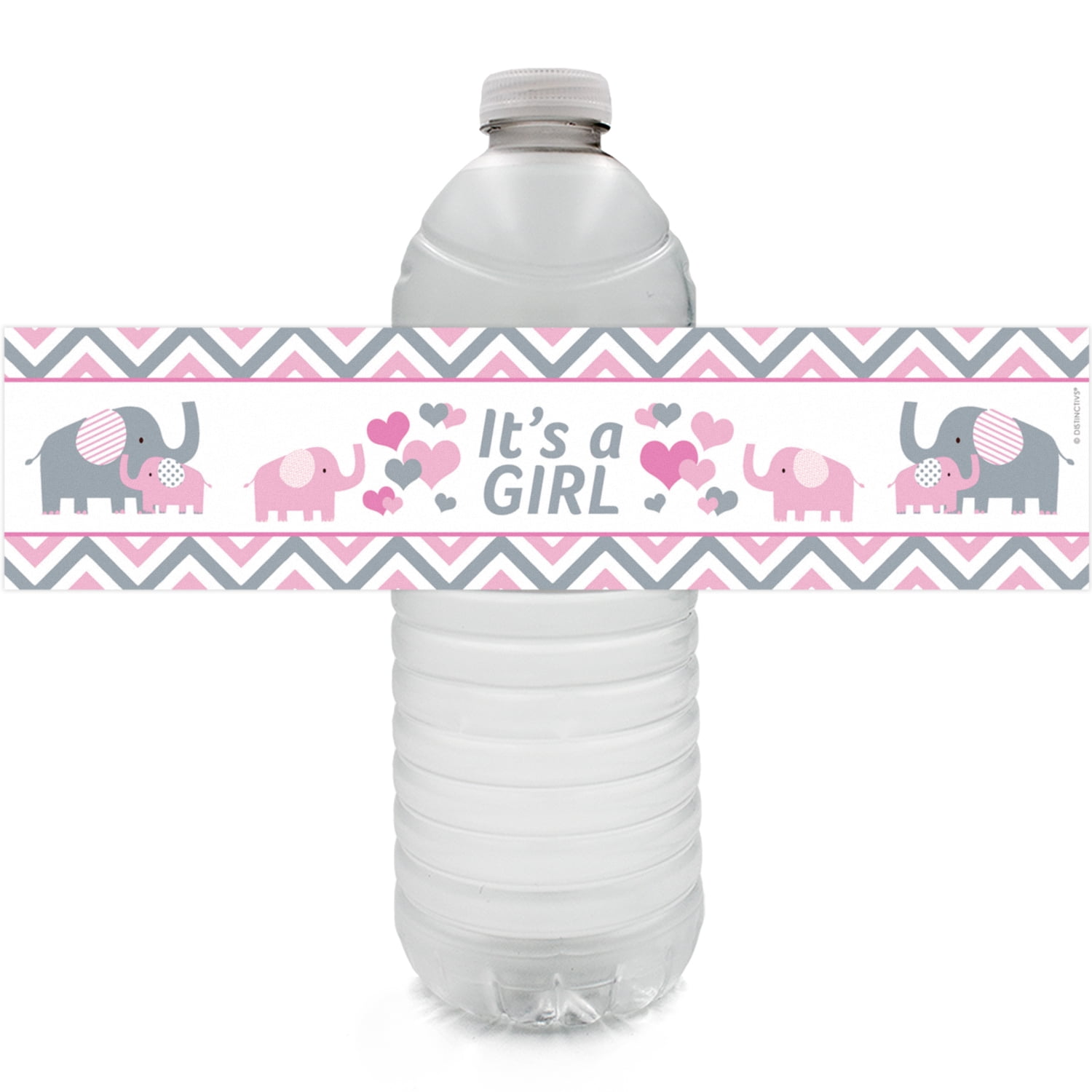 So easy to use and they complement your party decor well. Light pink water bottle labels 81875 x 1375 rectangle labels for inkjet and laser printers with template and printing instructions 5 sheets 35 labels wp8 999 9. Pink and grey elephant baby shower water bottle sticker labels each 85x2.