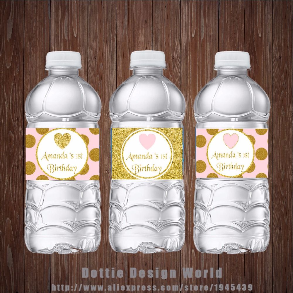 Pink And Gold Water Bottle Labels Shower Bottle Labels Water