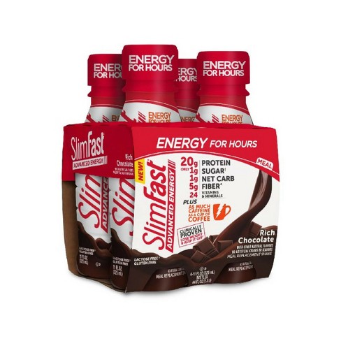 Slimfast Advanced Energy High Protein Meal Replacement Shakes Rich Chocolate 11oz 4pk