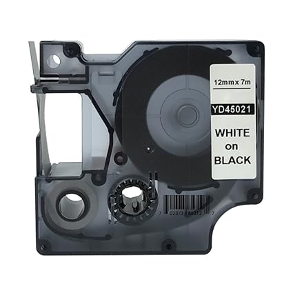 The tape and adhesive both are uv resistant and the tapes feature a split backing that makes them easy to peel and apply. Dymo 45021 white on black 12 d1 tape measure 12 x 23 and features a unique semi permanent adhesive that allows the labels to be peeled off without leaving a messy residue behind on most surfaces. Cablewire labels specially formulated for bending wrapping and flagging.