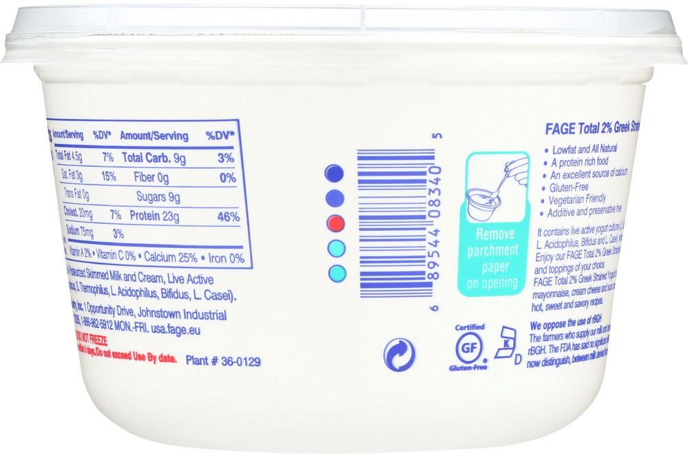 Fage 2 yogurt nutrition label. 2 plain yogurts generally have no added sugars no added colors no added flavors. Fage total 2 low fat greek yogurt with a perfect balance of rich flavor and creamy texture but with only 2 fat. 1 container 200g amount per serving my daily value.
